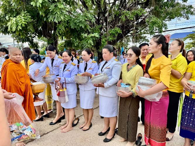 เวลา ๐๗.๐๐ น. พิธีทำบุญตักบาตรถวายพระราชกุศล ณ บริเวณลานด้านหน้าที่ว่าการอำเภอเขื่องใน