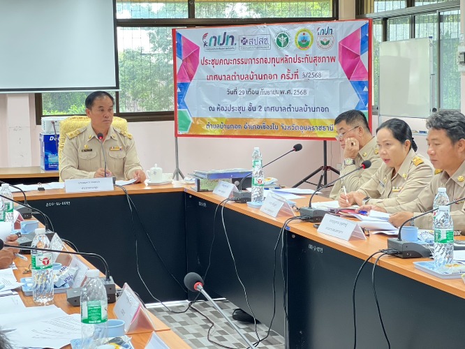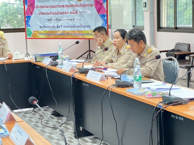 วันที่ 29 กันยายน 2568 เวลา 09.30 น. เทศบาลตำบลบ้านกอก นำโดยนายสมควร พลพวก นายกเทศมนตรีตำบลบ้านกอก ประธานคณะกรรมการกองทุนหลักประกันสุขภาพเทศบาลตำบลบ้านกอก จัดประชุมคณะกรรมการกองทุนหลักประกันสุขภาพตำบลบ้านกอก ครั้งที่ 3/2568 เพื่อขอความเห็นชอบการประเมินผลการดำเนินการ พิจารณาอนุมัติแผนการเงินและโครงการ ณ ห้องประชุมสำนักงานเทศบาลตำบลบ้านกอก อำเภอเขื่องใน จังหวัดอุบลราชธานี